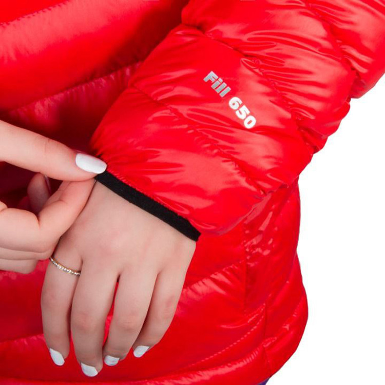 گرمایش عالی، نرمی و راحتی این کاپشن کلاهدار مرهون پر با کیفیت ۱۰-۹۰ است که به راحتی جمع می شود و فضای زیادی را در کوله پشتی اشغال نمی کند.