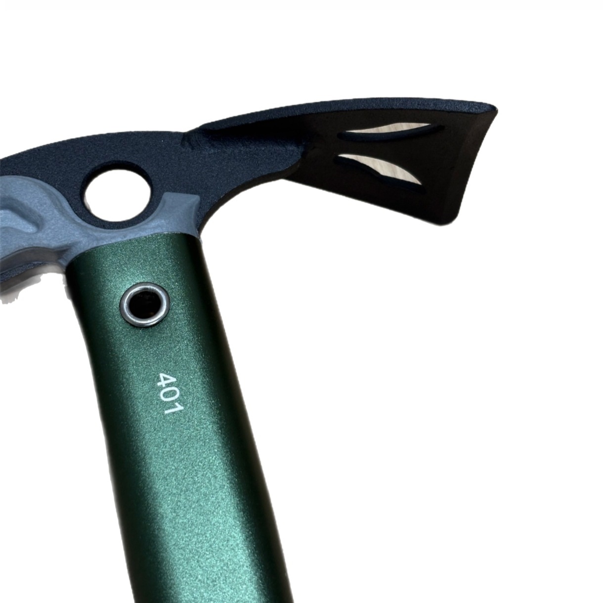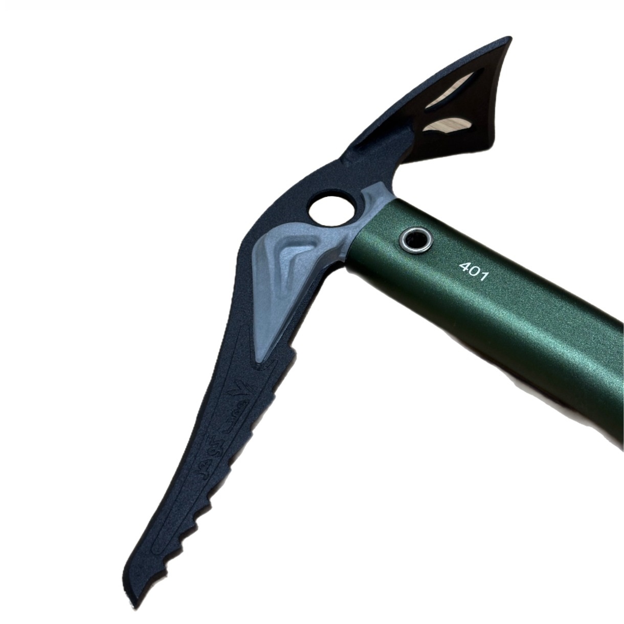 فلزی از جنس فولادی کروم مولیبدن که مقاومت خوبی دارد و برای یخ/برف مناسب است. و شامل دو بخش است:* *تیغه (Pick):* برای فرو رفتن در یخ